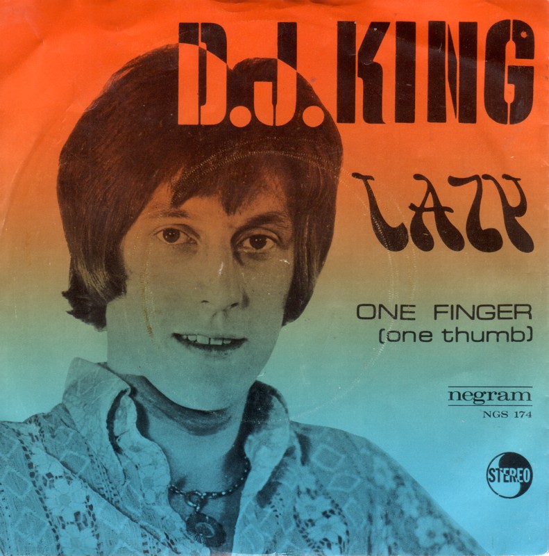 It’s time to have another look in the Carl Mitchell files. When I took this archive from Amsterdam, now two years ago, one of the many boxes were put apart at my loft, with the thought to give the contents time. Lately on a Saturday I took the grey faded cardboard box into my recording studio. In the box some fifty singles, most of them very scratchy due to the fact they had be hidden in a wet cellar for 35 years. Although I did some cleaning, they still sounded scratchy. Many of the singles carried either the words ‘advance promotion copy’ or ‘not for sale’. I must admit that many of the singles, although I was a more than avid listener, I’ve never heard before. Some were typically RNI singles and most of the box contained songs from 1970. one cover of a single paid special attention to me as it was a song from D.J. King with on the A side a song called ‘Lazy’ and on the B side ‘One finger one thumb’. It was released on Negram Records in Holland and mentioned as a ‘little M.A. Production’. The photo on the cover reminded me of one of the many photos I found in the Carl Mitchell Boxes. D.J. King is no one other than Stevie Gee, who was for one stay onboard the MV Mi Amigo for Radio Caroline International in 1968. So another singing deejay.